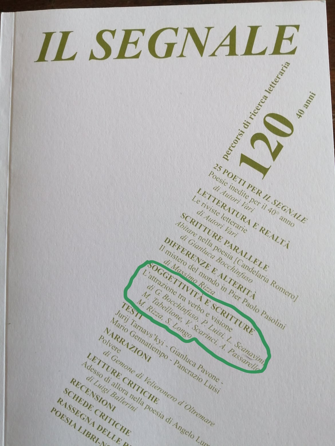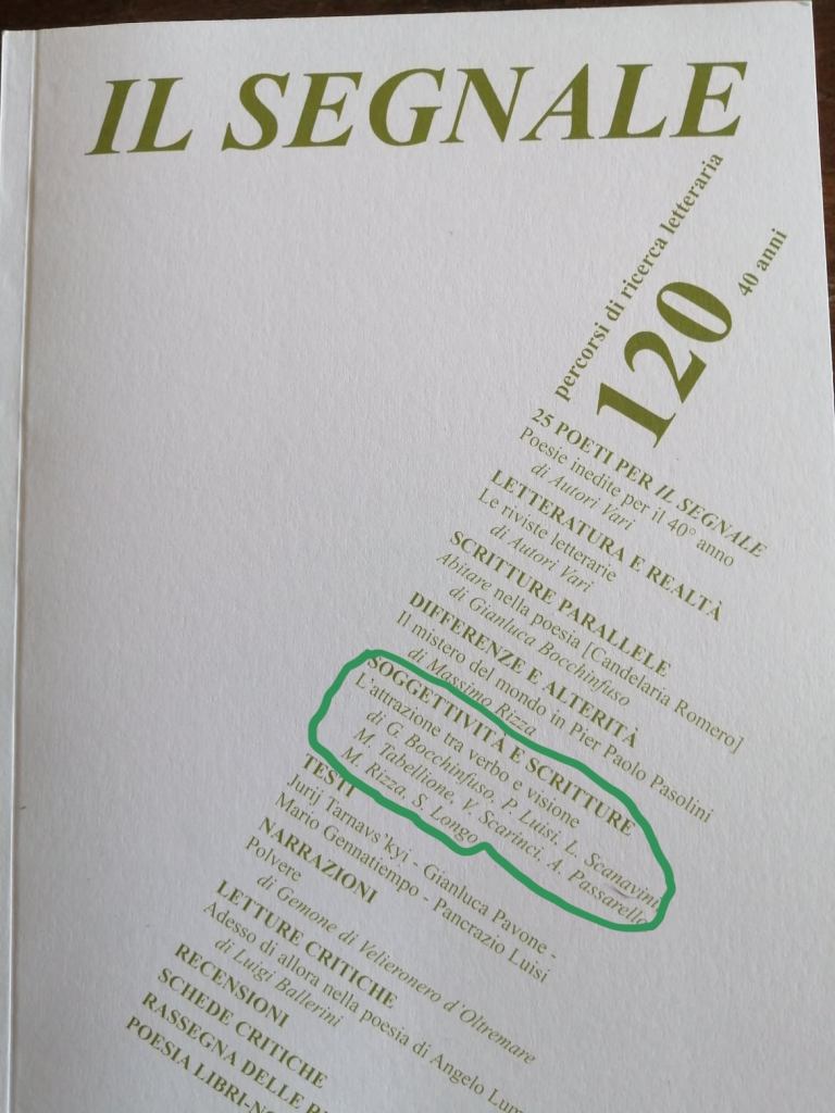 L’autunno è arrivato decisamente portando con sé alcuni avvenimenti e temi su cui riflettere. È stato pubblicato il numero 120 de Il Segnale con i suoi quaranta anni di pubblicazione, senza interruzioni, della rivista. Sta in quel numero così importante l’articolo cui ho fatto riferimento qui la cui traccia è stata così stimolante per me che tuttora non smetto nel mio piccolo di interrogarmi su quanto e come una scrittura possa davvero essere in grado di illustrare la realtà materiale e simbolica del vivente. Ammesso che sia questo l’obiettivo che si prefigga chi scrive, essendocene pure altri di rispettabilissimi.